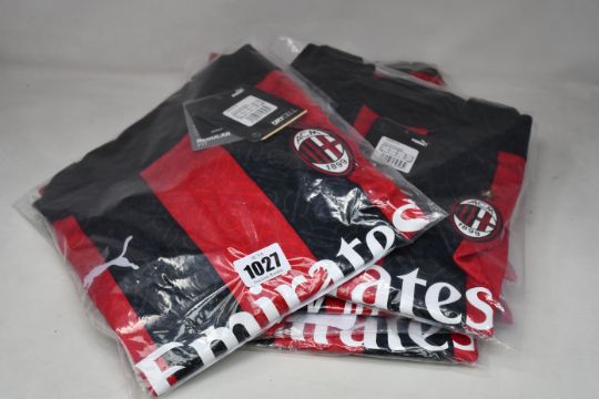 Seven as new Puma AC Milan replica shirts (S, 3 x M, 2 x L, XL).