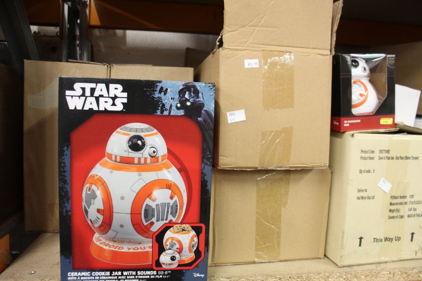 A quantity of Star Wars merchandise to include mugs, bags, cookie jar and pencil cases.