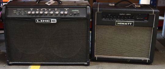 A pre-owned Line6 Spider IV 120 guitar amplifier and a pre-owned Hiwatt Maxwatt 40fx amplifier.