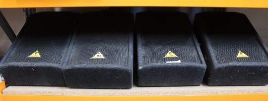 Four pre-owned Behringer Eurolive high power 2-way floor speakers (Model number f1220) (Missing power cables).