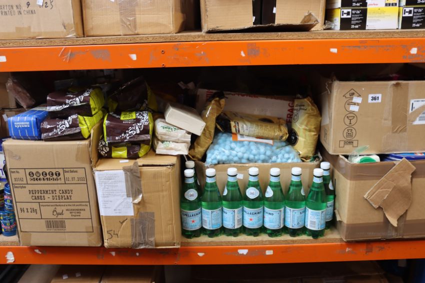 A large quantity of food, confectionery, beverages and related to include Latzimas Extra Virgin Olive Oil, Pure New York Maple Syrup and Aptamil Sensavia Breastmilk Substitute.