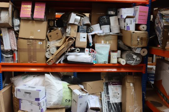 A quantity of household items to include wallpaper, lampshade, wicker basket and carpets (Over 18s only).