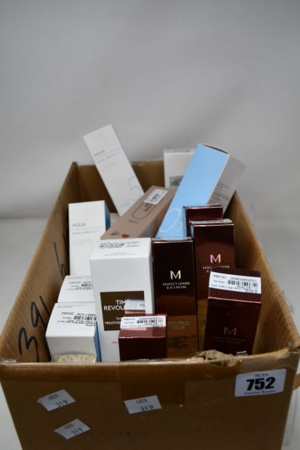 A quantity of Missha beauty products to include Aqua 5 sun gels, Misa Geum Sul Glyoun eye cream, Time Revolution the first treatment essence, Perfect Cover B.B cream and related items (Approximately 28 items).
