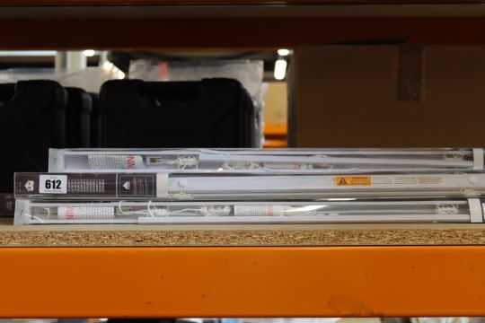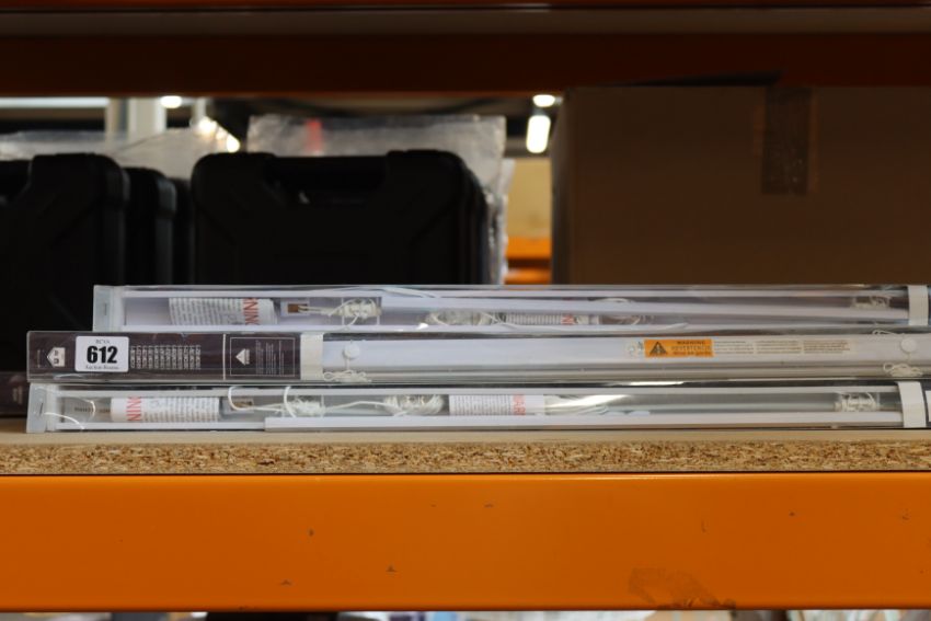 Six as new Furnished White PVC Venetian Blinds (5 x 75cm x 150cm and 1 x 150cm x 150cm).