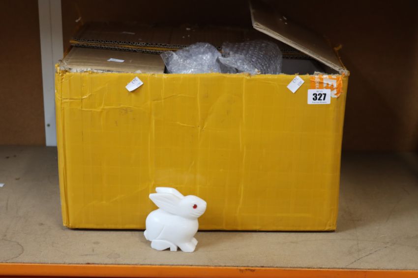 A box of Oriental stone rabbits.