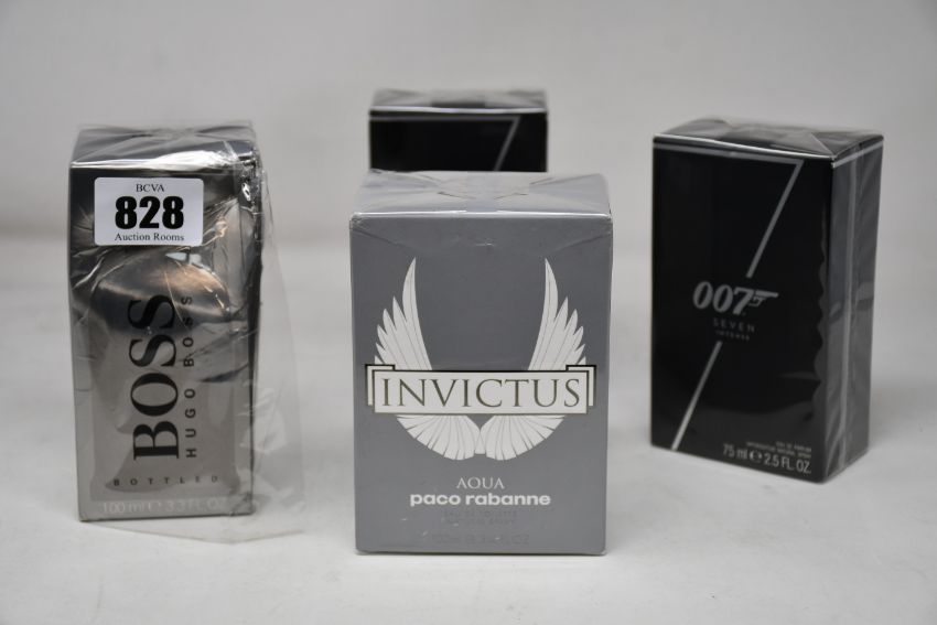 A Paco Rabanne Invictus Aqua eau de toilette (100ml), two 007 Seven Intense eau de parfum (2 x75ml) and a Hugo Boss Bottled (100ml).