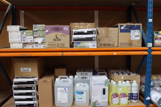 A quantity of cleaning products to include hand sanitizers/soaps/gloves.