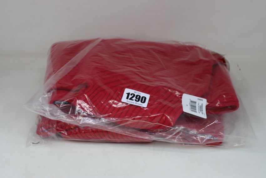 Two as new Calvin Klein long sleeved roll neck knitted midi dresses in red (S, M).