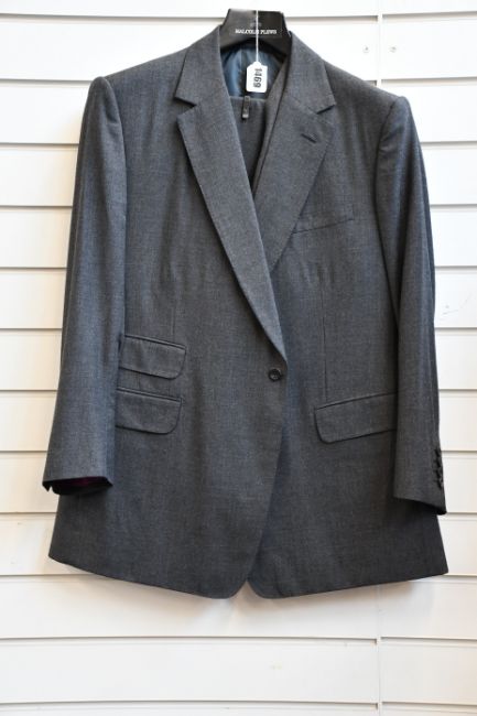 An as new Malcolm Plews (By Appointment TO HRH The Prince of Wales) Bespoke Military Tailor three-piece suit in dark grey (No sizes).