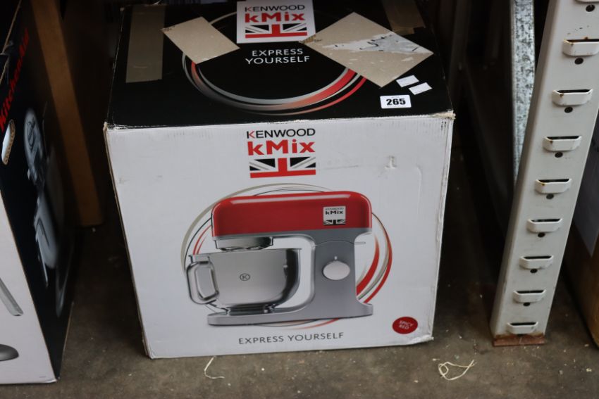 A boxed Kenwood K Mix KMX750RD food processor in red.