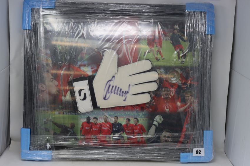 An as new signed and framed Jerzy Dudek goalkeeper glove (BCVA do not authenticate the signature).