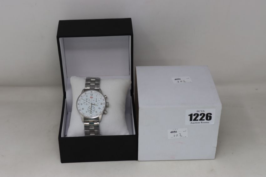An as new Swiss Made Leica chronograph watch in silver.