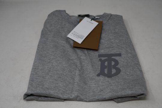 An as new Burberry Emerson monogramed top in grey (S - RRP £350 - Please note item has security tag attached).