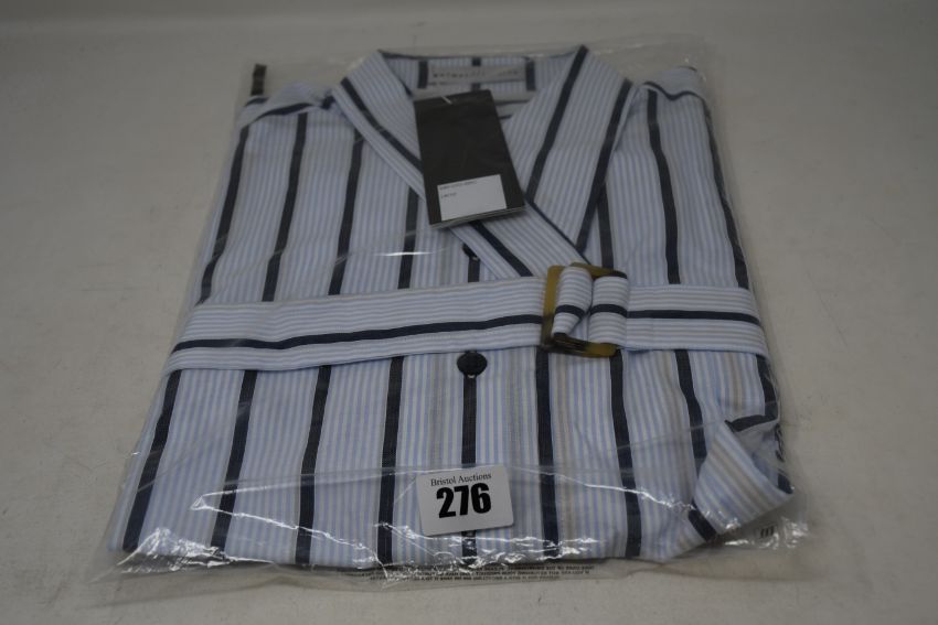 An as new Palmer//Harding navy stripes cotton boyfriend shirt with strap collar detail (Size 12 - RRP £234).