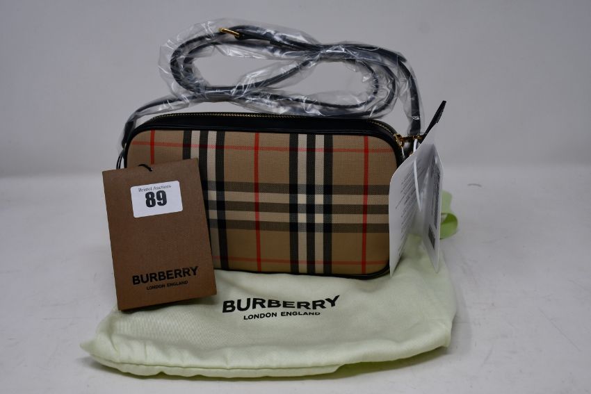An as new Burberry vintage check camera bag with dust bag (RRP $830).