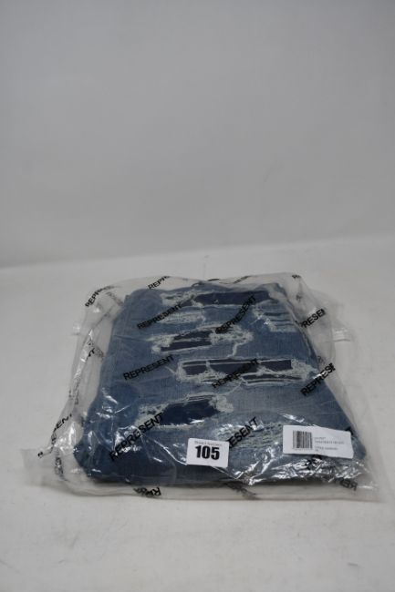 A pair of as new Represent Shredded jeans in light indigo (33" - RRP £150).