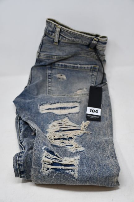 A pair of as new Represent Shredded jeans in blue cream (32" - RRP £150).