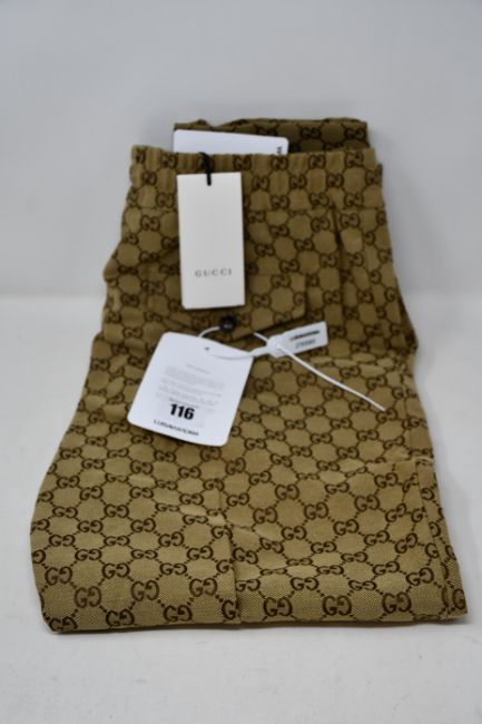 A pair of as new Gucci GG print drawstring trousers (Size 48 - RRP £680).