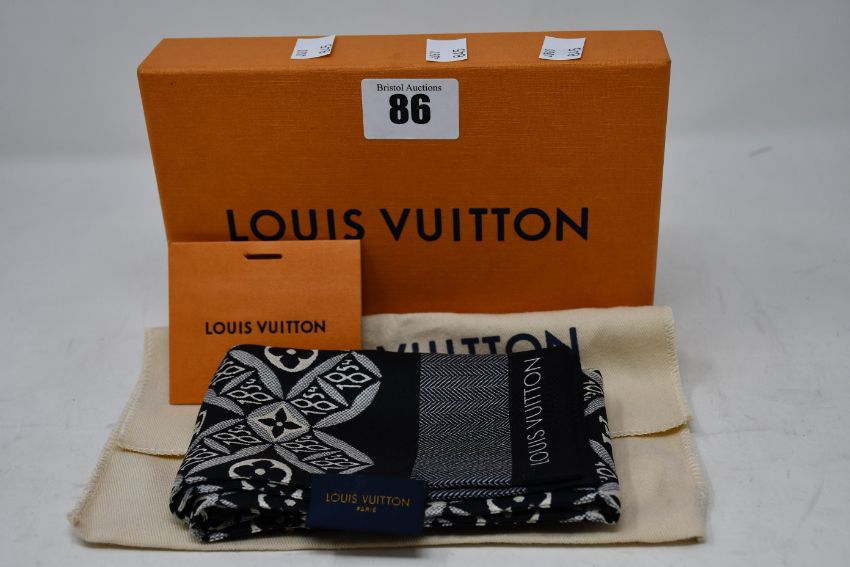 An as new Louis Vuitton Black Noir monogram bandeau neckerchief (One stitch of tag is loose but item is new).