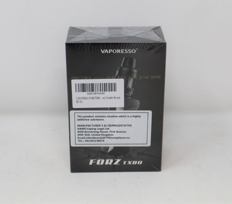 Two boxed as new Vaporesso FORZ TX80 Kits in Leather Brown (Boxes sealed).