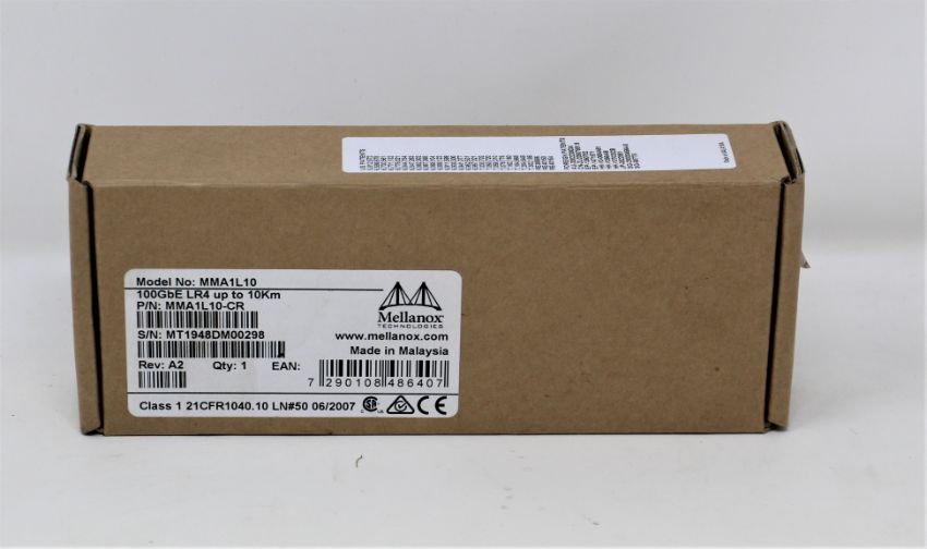 A boxed as new Mellanox MMA1L10-CR Optical Transceiver (100GbE QSFP28 LC-LC 1310nm LR4 up to 10km).