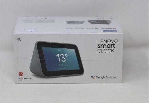 A boxed as new Lenovo Smart Clock with Google Assistant in Hemp (M/N: ZA4R0000GB) (Box sealed).
