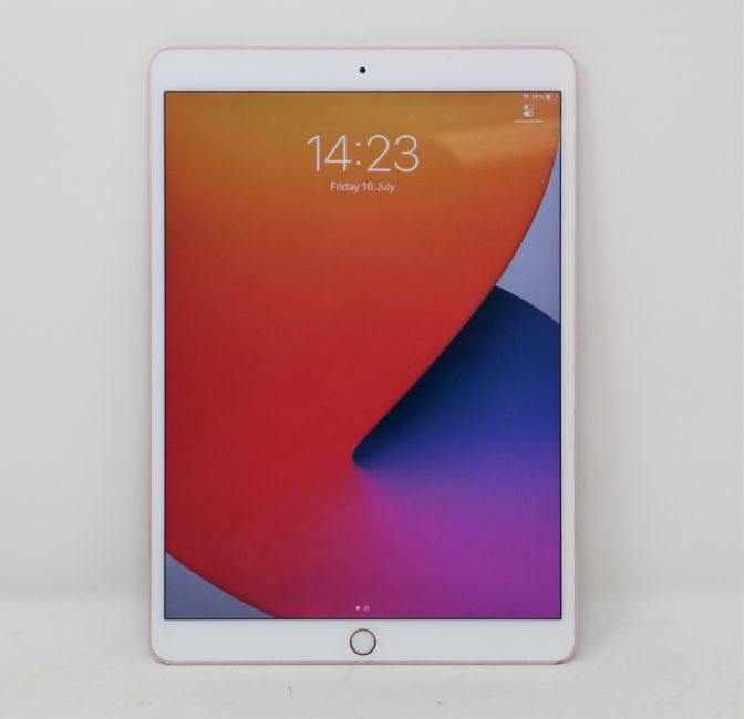 A pre-owned Apple iPad Pro 10.5" A1701 (Wi-Fi Only) 256GB in Rose Gold (M/N: MPF22B/A) (iCloud activation clear. Large scratch to screen glass) (Checkmend report ID: CM17282341-B9899).