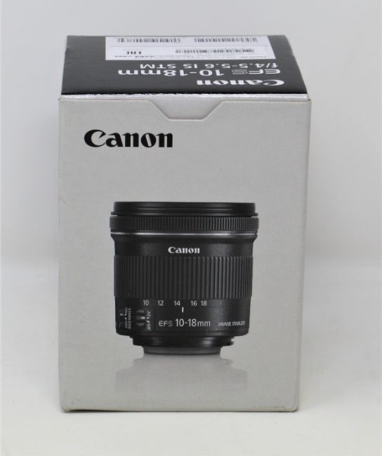 A boxed as new Canon EF-S 10-18mm f/4.5-5.6 IS STM Lens (P/N: 9519B005AA) (Box opened).