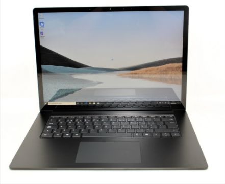 A boxed as new Microsoft Surface Laptop 3 15" in Black with 10th Gen Intel Core i7 Processor, 16GB RAM, Intel Iris Plus Graphics, 512GB SSD running Windows 10 Pro (Portuguese Keyboard Layout. UK plug adapter required) (Plain packaging. Box opened for testing).