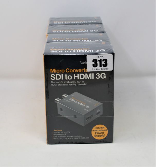 Four boxed as new Blackmagic Micro Converter SDI to HDMI 3G Video Converters (Power supples included) (Boxes sealed).