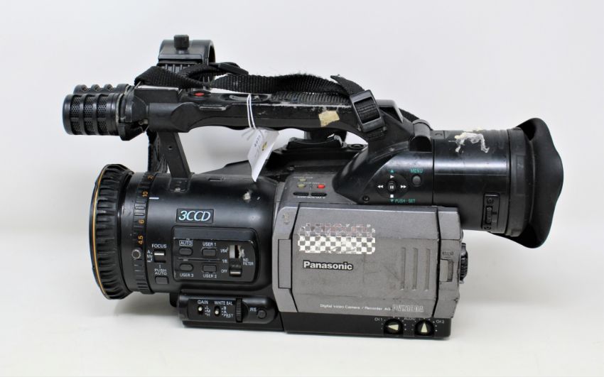 A pre-owned Panasonic AG-DVX100AP 3CCD MiniDV Camcorder with Leica Dicomar Lens (No battery, untested, sold as seen).