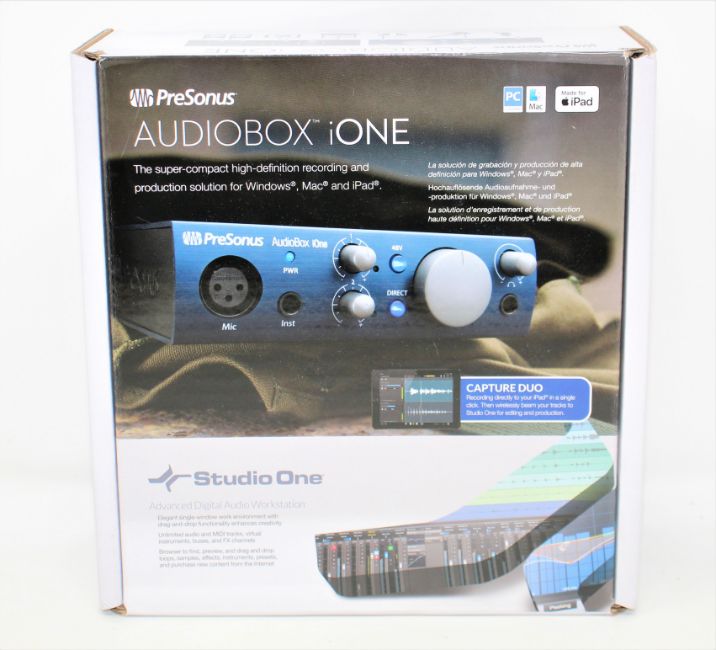 A boxed as new PreSonus AudioBox iOne USB Audio Interface (Box opened).