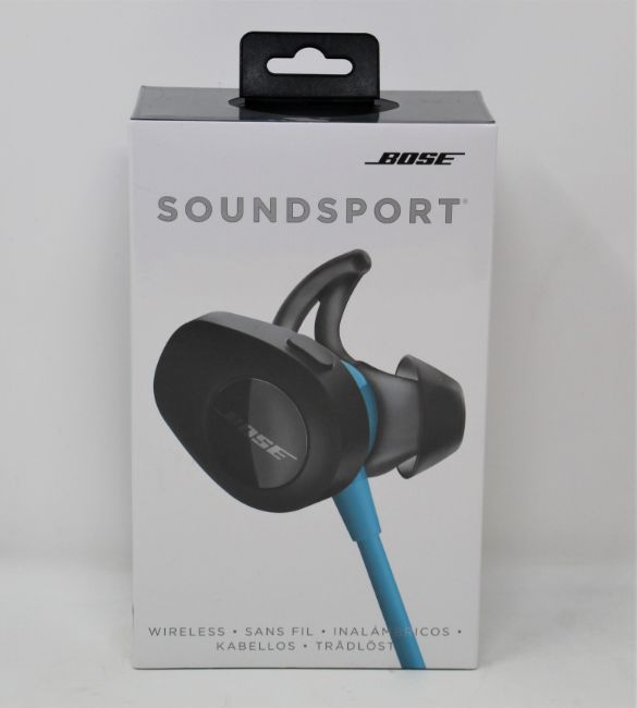 A boxed as new pair of Bose SoundSport Wireless Headphones in Blue/Black (Box sealed).