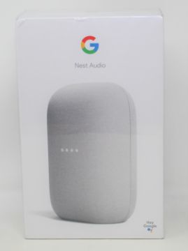 A boxed as new Google Nest Audio Smart Speaker in Chalk (M/N: GA01420-GB) (Box sealed, some superficial damage to box).
