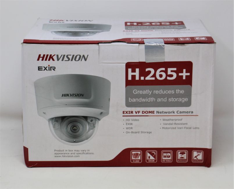 A boxed as new Hikvision DS-2CD2723G0-IZS 2.8-12mm EXIR IR VF Dome Network Camera (Box sealed, some damage to box).