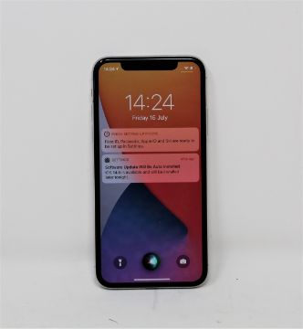 A pre-owned Apple iPhone X (AT&T/T-Mobile/Global/A1901) 64GB in Silver (iCloud activation clear) (Checkmend report ID: CM17283001-68882).