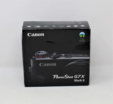 A boxed as new Canon PowerShot G7X Mark II Digital Camera in Black (Box opened, UK plug adaptor required for battery charger).