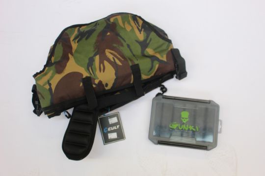 Ten boxed as new Gunki Walk Off the Line lure storage boxes together with as new Cult distance sticks and an as new Cult compact sleeve for 3 rods.