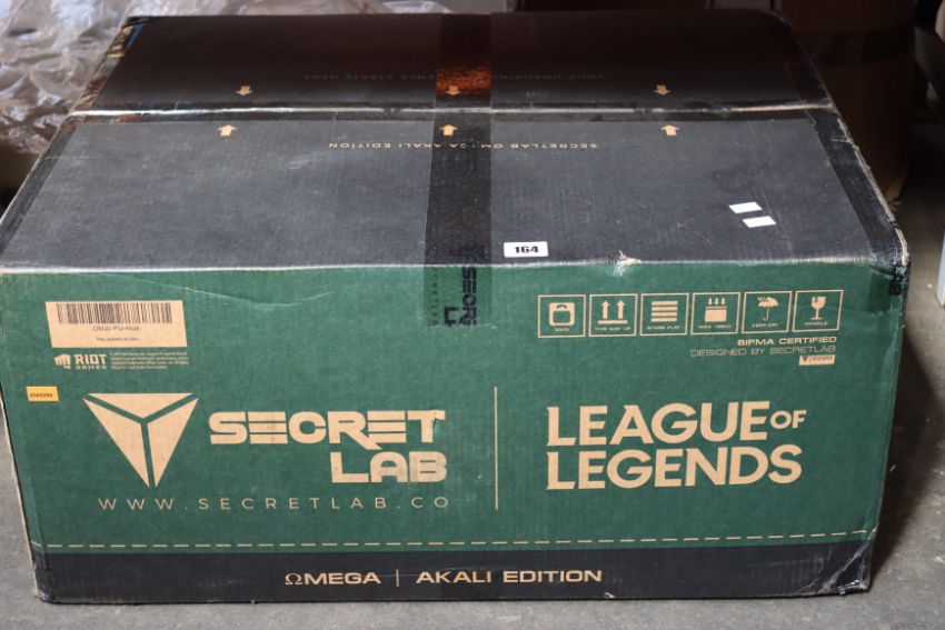 A boxed as new Secret Lab Omega League of Legends Akali Special Edition Gaming Chair.