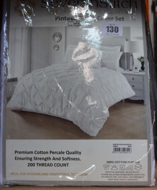 Five as new Seventh Stitch Pintuck Double Duvet Cover Sets in white (Some damage to packaging).