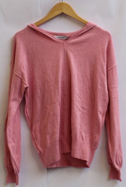 Three as new NRBY Lily hooded cotton cashmere sweaters (S, M, L).