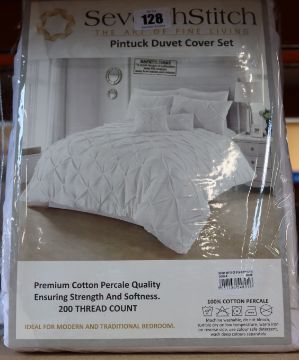 Five as new Seventh Stitch Pintuck Double Duvet Cover Sets in white (Some damage to packaging).