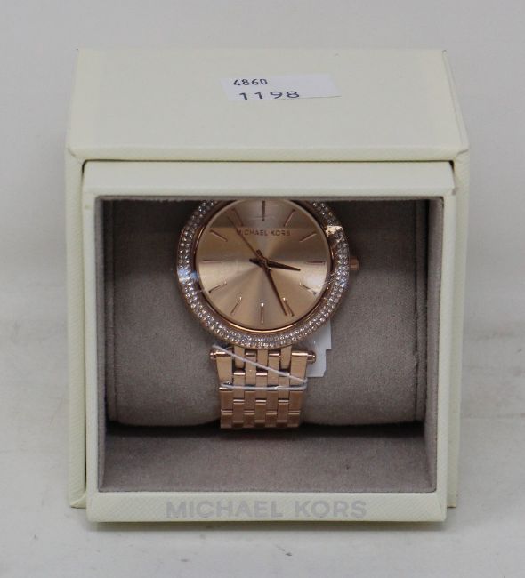 A ladies as new Michael Kors Darci watch in rose gold (MK3192).