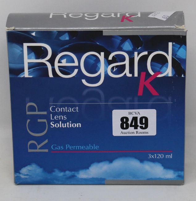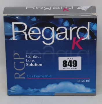 Four boxes of Regard K RGP Contact Lens Solution (3 x 120ml each box, 04/22).