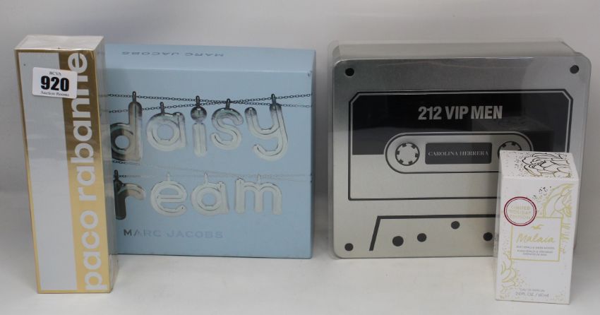 A quantity of eau de parfum/eau de toilette to include Marc Jacobs gift set, Paco Rabanne miniature travel set and Carolina Herrera 212 VIP Men set.