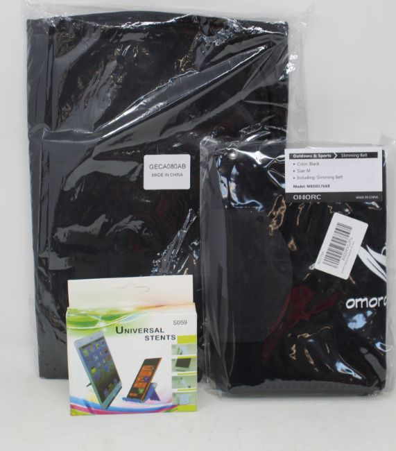 A quantity of as new OMORC slimming belts, eight as new car seat organisers and a quantity of universal stents.