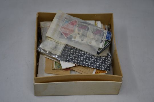 A box of stamps to include big box of Kiloware, CTO sheets for packets, etc.
