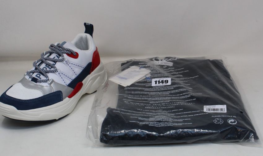 Three pairs of as new Pepe Jeans jeans (W28/L32, W29/L30, W38/L32) together with a pair of Pepe Jeans Sinyu tech trainers (EU 39).