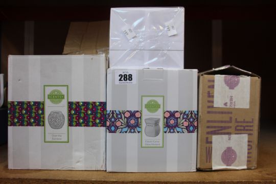 A quantity of Scentsy products to include Scentsy classic curve gloss mustard wax warmer, a Scentsy over the rainbow wax warmer, The White Company fresh grapefruit/jasmine & orange flower large scented candle.