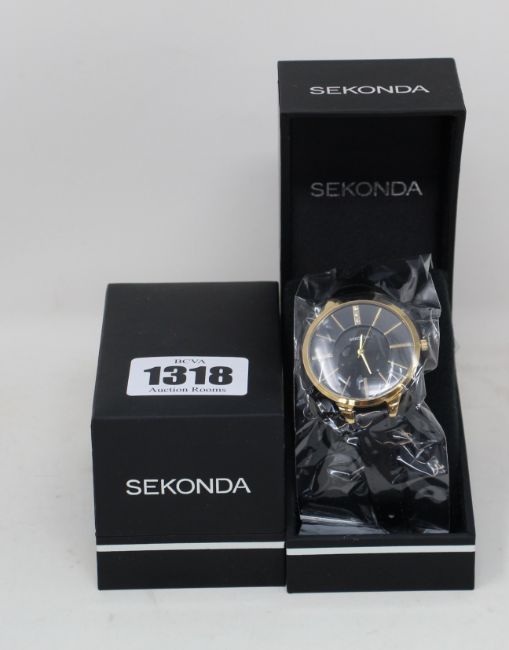 Three men's as new Sekonda dial watches with black face and leather strap.